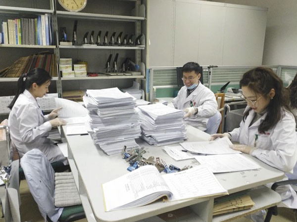 病案回收是病案管理中的第一步,病歷能否及時歸檔關系到患者復印、疾病分類、數據檢索、病案閱覽,也關系到省市、國家的各項統計報表數據上報等工作。實行新崗位管理模式后,病案管理人員責任心更強,工作效率明顯提高,同時加強了與臨床的溝通,得到臨床醫護人員的認可。隨著出院病歷的增多,患者復印也成倍增長,一個小小窗口,日均接待病歷復印300余份,10000頁紙張,大家知難而進,克服了空間、人員緊張的現狀。