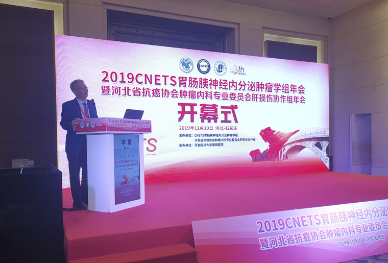2019CNETS胃腸胰神經內分泌腫瘤學組年會暨河北省抗癌協會腫瘤內科專業委員會肝損傷協作組年會于11月10日在石家莊召開。本次會議由CNETS胃腸胰神經內分泌腫瘤學組、河北省抗癌協會腫瘤內科專業委員會肝損傷協作組主辦,國家癌癥中心、中國醫學科學院腫瘤醫院趙東兵教授、我院李勇教授擔任大會名譽主席,我院殷飛教授為大會主席。省內專業同仁200余人參會。