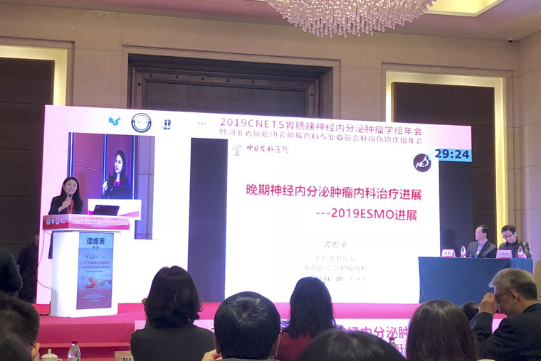 我院副院長趙群教授、內鏡室主任吳明利教授主持學術會議。中日友好醫院譚煌英教授帶來的是2019ESMO神經內分泌腫瘤診治進展。中日友好醫院羅杰教授則是從病理角度為大家講述了食管神經內分泌腫瘤的病理診斷。北京協和醫院程月鵑教授跟大家分享了胰腺神經內分泌腫瘤肝轉移的治療。我院殷飛教授與大家分享了直腸神經內分泌腫瘤治療,從流行病學、臨床表現、診斷治療及影響直腸NET預后因素等方面進行講述。諸位專家學者的講座內容豐富、形式多樣,將NETs的最新前沿進展及時傳遞給各位同仁,同時圍繞新的理論、新的技術、新的熱點展開討論。