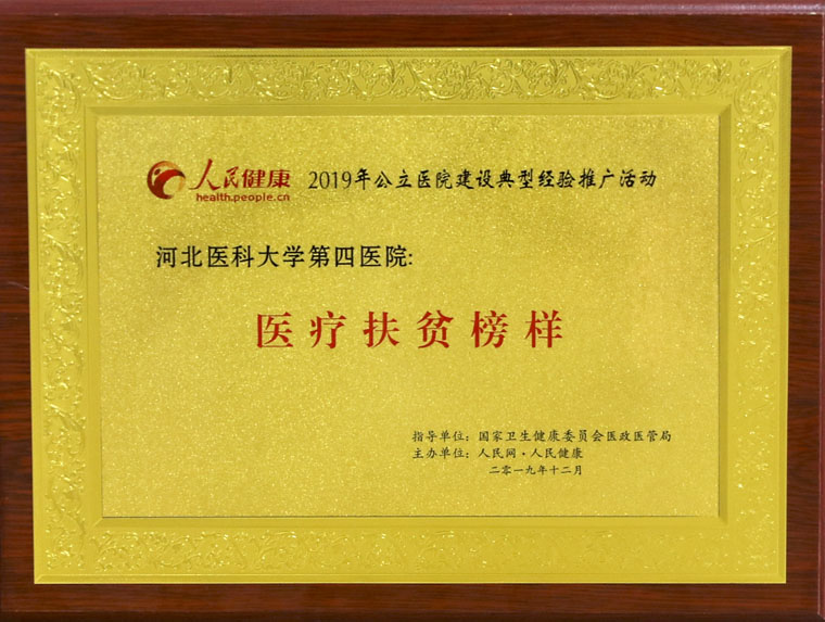 12月14日,2019中國醫療機構高質量發展論壇暨公立醫院建設經驗推廣交流大會在北京召開,會議由國家衛生健康委員會醫政醫管局指導,“人民網·人民健康”主辦。會議期間,對經過主辦方組織的評審專家評審出的公立醫院建設成就典型推廣單位和對醫院建設具有突出貢獻的管理者進行頒獎,我院榮獲“醫療扶貧榜樣獎”,全國共10家單位獲獎,河北省僅我院1家獲此殊榮。