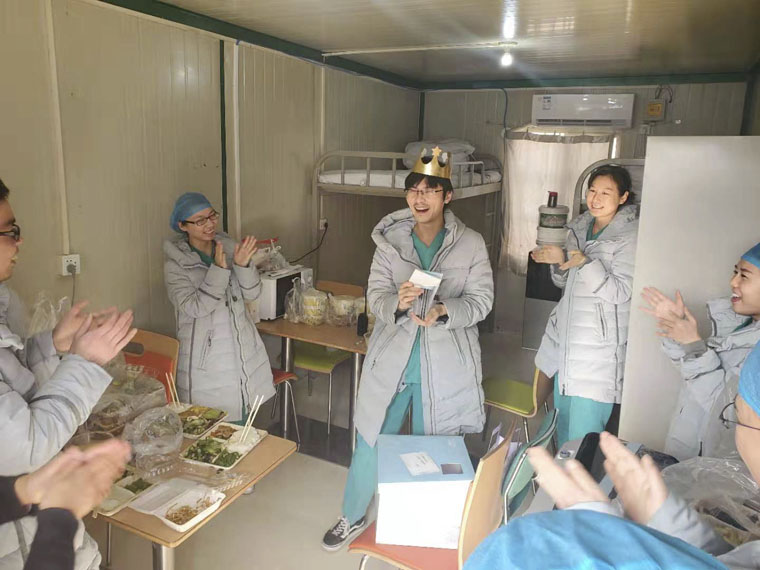 醫院早已安排食堂為他準備了生日蛋糕和長壽面。當看到生日蛋糕的那一刻,郭鵬十分驚喜。也就在這一天,他正式向黨組織遞交了入黨申請書,并許下了生日愿望,祈愿早日戰勝疫情,所有醫務人員平平安安。