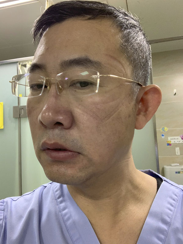有時候,看著我們的醫生堅守崗位,進行著插管、上呼吸機、深靜脈穿刺等操作,每次出來都是一身大汗,但只能做簡短的休整便再次返回病房;看著我們的護士連續工作6小時以上,等出來時,臉上留下深深的壓痕,我是真的心疼,甚至忍不住掉眼淚……