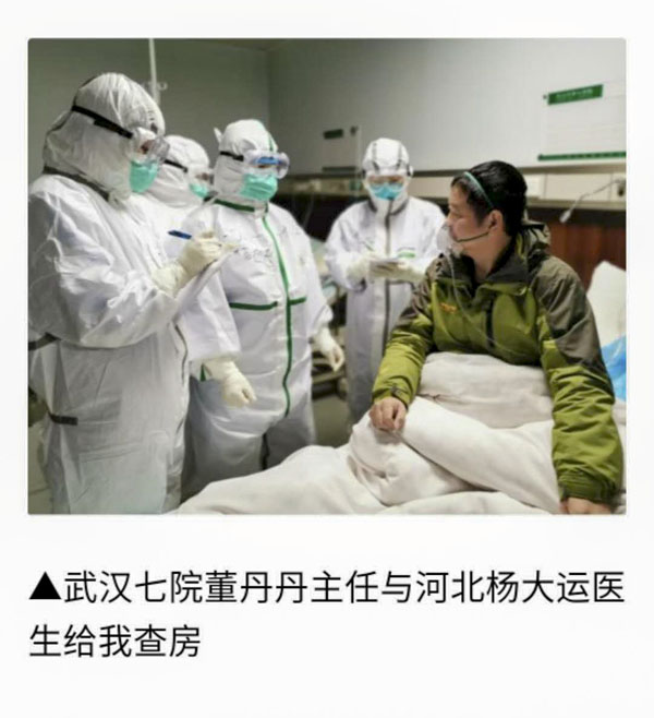 這是我院90后美小護王亞美的一篇心情日記,寥寥幾句概括了她在武漢抗疫一線23天的生活和工作,看似輕松的背后是無盡的汗水和艱辛的努力。年紀輕輕的她,和伙伴們一起,用自己的愛心、耐心和細心對待每一位患者,文中的“王叔”就是這其中的一位。恰好一篇收錄于“百家號抗擊新型肺炎專題人物欄目#戰疫日記#”中的患者自述,也寫到了她們的事跡,在這位患者的日記中,同在武漢一線的我院楊大運和王亞美她們一起,被稱為“神仙妹妹”。