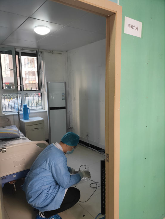 初三接到緊急通知,東院區也按照上級要求建立發熱門診和隔離病房。有了前期的經驗,后面建設會更加順暢,大家齊心協力,加班加點,只用了半天時間就調試好了東院所有的系統和設備,保障了一線醫護人員的使用。
