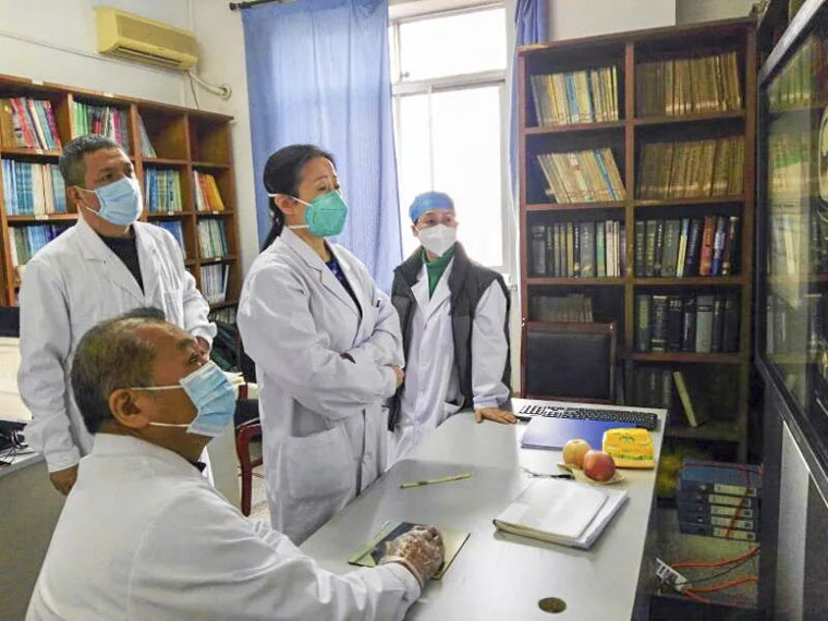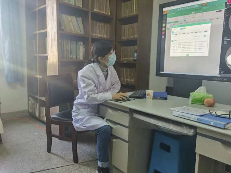 我院呼吸內科丁翠敏主任和神經內科韓穎副主任同在普通型組。丁主任帶領省市專家組的普通型組醫生,每日上、下午都要查看組內所有患者的病情,反復比較前后胸部CT、核酸檢測和其他檢查,梳理醫囑。這幾天患者普遍病情得到緩解,有出院可能的患者增多。為了進一步全面了解患者情況,醫護們利用微信等工具,進行視頻查房,隨時觀察患者情況。韓穎副主任力求治療前移,把神經系統并發癥的可能性降到最低。她梳理了所有病人神經系統疾病的高危因素,做成表格,隨時監控患者的情況。