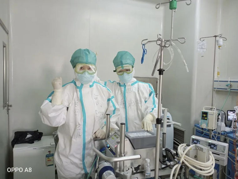 重癥組的護理人員有我院的魏淑艷、高鵬、王騰龍和孫美榮,他們均作為帶班護理組長參與一線護理工作,保證重癥監護病房24小時不間斷均有省級的護理專家指導。此外,他們還協助當地醫院梳理了病房的規章制度和流程,改善了防控措施。危重患者護理不但任務重、工作量大,而且病情變化快。他們努力克服由于防護裝置導致的視線模糊、行動不便等困難,細致入微地觀察、監控和操作,為臨床決策提供了第一手的證據。因為倒班,他們經常凌晨一兩點鐘趕往醫院,一天進入隔離病房一到兩次,每次四個小時,加上穿脫防護的時間,每次將近要六個小時,生活變得極無規律。但大家都毫無怨言地堅持下來了,看到在自己辛苦的努力下,重癥監護病房更加規范專業,病人轉危為安,勞累之余更是欣慰。