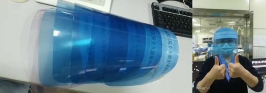 疫情漫延,醫用防護用品緊張,夏青青、申利捷等同志,積極主動利用膠片,自制防護面屏,在放射科、介入導管室、介入病區使用,還自制20多個無償提供給其他科室,減輕了醫院負擔,支援了我院抗疫工作。