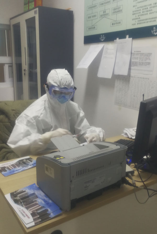 在發熱門診,她組織全體隊員認真學習新冠肺炎診療方案最新版(第七版),規范發熱門診診治流程,再次培訓無菌觀念,時刻強調做好自我防護,悉心為大家檢查防護服穿脫情況,要求“一個都不能少,一個也不能掉隊”。她的防護服一穿就是6個小時,每天12個小時堅守在崗位上,而脫下防護服的第一件事就是去廁所和沖掉一身的汗水。