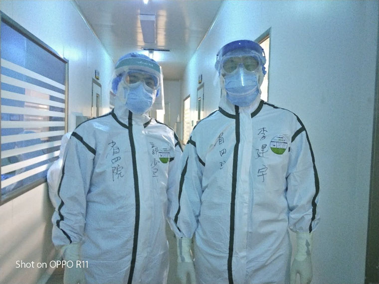 在武漢第七醫院的日子里,朱桂軍主任、申康康副護士長同醫療隊員們一起同時間賽跑、與病魔較量、不畏懼艱險、盡全力救治。朱桂軍主任擔任河北省援鄂醫療隊重癥組組長,同時被臨時任命為武漢市第七醫院重癥醫學科主任。除了每天繁重的醫療工作,還需要溝通、協調物資,調整排班等。他每天都要深入病房查看患者,及時制訂醫療方案,調整呼吸機參數,落實各項化驗、檢查等……申康康副護士長擔任河北省援鄂醫療隊重癥組護理組長,同時被臨時任命為武漢市第七醫院重癥醫學科護士長,兼任中共河北省援鄂醫療隊重癥組臨時黨支部書記。他過硬的專業技術和認真負責的工作態度得到了省衛建委領導和當地醫院工作人員的高度肯定。除了繁重的護理和管理工作,他還和朱主任一起安慰大家情緒,鼓舞士氣。朱桂軍主任還在 2月12日光榮的成為一名中共預備黨員,完成了自己的心愿。