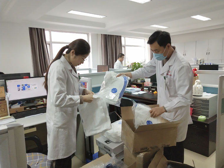 2020年初,中國遭受新冠肺炎疫情的沖擊。看到祖國有難,魏女士和母親非常擔心、掛念,遠在加拿大的她們迅速聯系了高玉環教授。得知我院防護物資緊缺,醫護人員依然不顧危險奮戰在抗疫及醫療工作一線時,魏女士說:“我一定要為祖國出一份力。”她在加拿大快速找到合適的貨源,打通物流通關渠道,選擇高效的物流方案。為確保物資第一時間發運,她親自檢查清點。由于物資數量太多,最終分裝為25個包裹,為快速完成裝卸,她充當了裝卸工的角色,并自付國際物流運費1萬多元。這些飽含愛國深情的醫用防護物資歷經半個多月的跨國輾轉,終于順利到達我院。