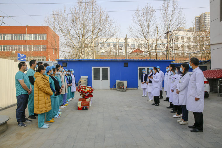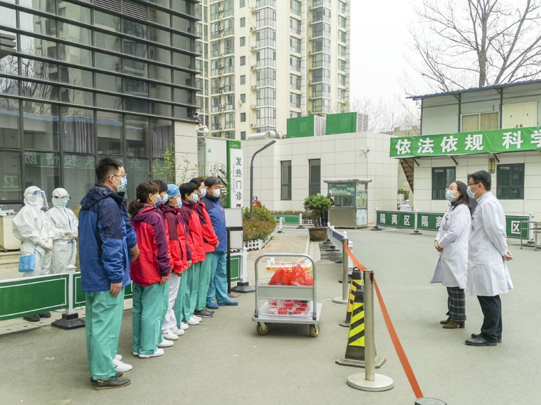 在東院,耿翠芝副院長代表醫院對大家臨危受命,積極投身抗疫一線,勇于擔當、無私奉獻的精神給予了充分的肯定,感謝大家為疫情防控作出的努力和貢獻,希望大家在做好自身防護的前提下,堅定信心、履職盡責,全力做好發熱病人排查工作,扎實落實好各項工作流程和防控措施,圓滿完成任務。