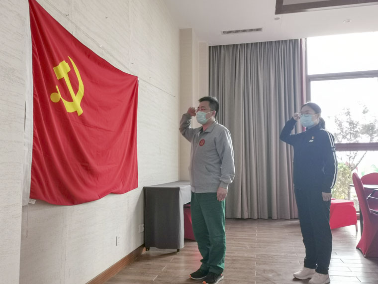 我院援鄂抗疫醫療隊臨時黨支部召開第二次會議,討論王亞美同志進行入黨宣誓等議題