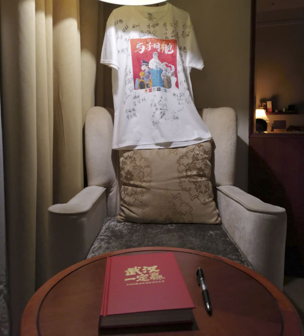 離別前兩天,掛在申康康房間里簽滿戰友簽名的文化衫和寫有留言的紀念冊