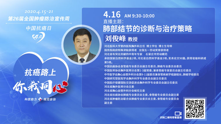 明日直播4.16|劉俊峰:肺部結節的診斷與治療策略