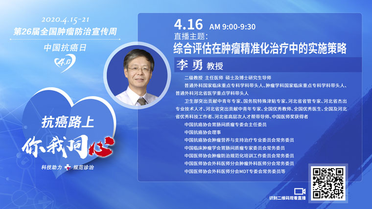 明日直播4.16|李勇:綜合評估在腫瘤精準化治療中的實施策略