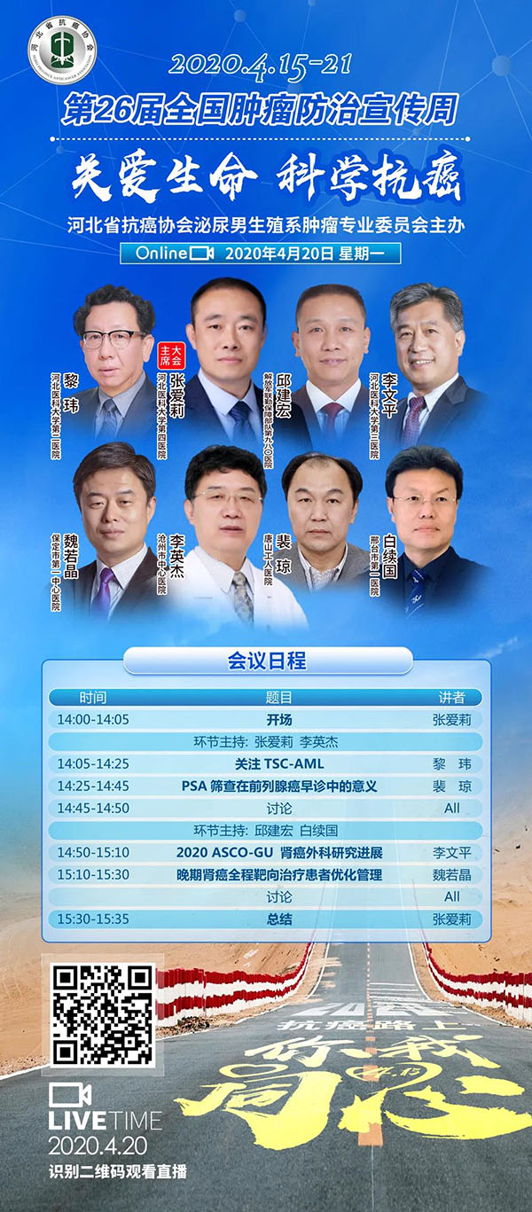 明日直播4.20|河北省抗癌協會泌尿男生殖系腫瘤專業委員會系列活動來了!