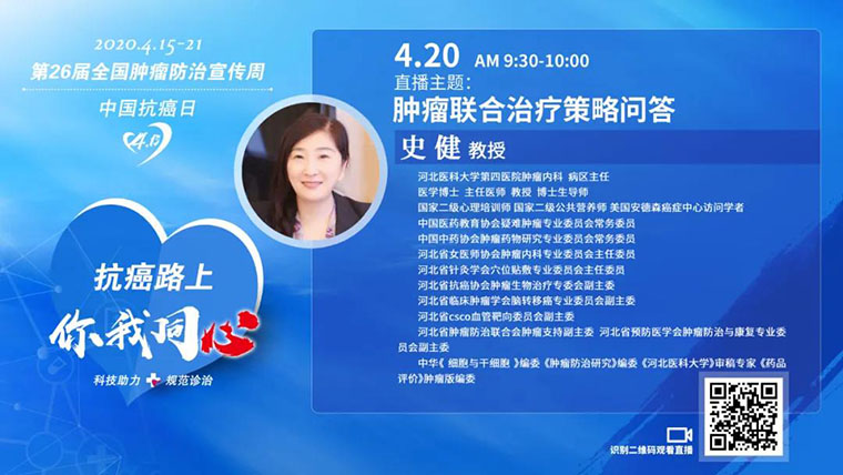 明日直播4.20|史健:腫瘤聯合治療策略問答