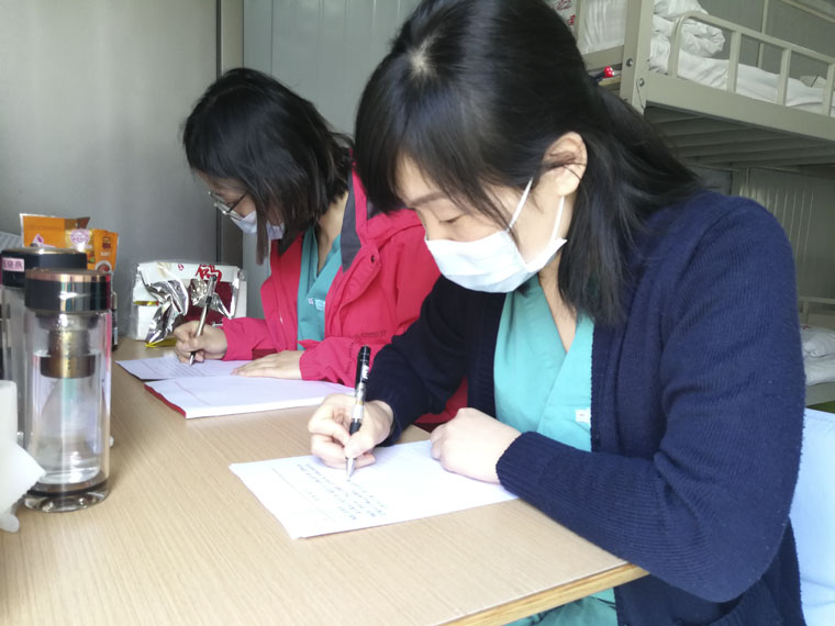 東院發熱門診臨時黨支部積極召開支部會議,密切了解各位隊員的思想動態、情緒變化,開展了以宿舍為單元的組織宣傳工作,宣傳黨員的先進性,號召有志向的同志積極向黨組織靠攏,先后有9名同志向黨組織遞交了入黨申請書。