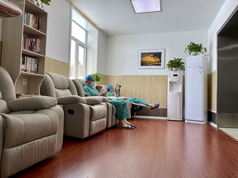 煥然一新的休閑區目前已投入使用,外科醫生在手術間歇會來這里休息一下,喝水、看書、聊天或探討一下患者病情,有的專家還帶來電腦,開視頻學術會議。溫馨雅致的休閑區是醫院繼手術間改擴建后對醫務人員工作環境的升級改造,這為每日忙于手術的醫護人員提供了一個舒適的緩沖地帶,大家在這里解壓、調整,以飽滿的狀態繼續投入到工作中。