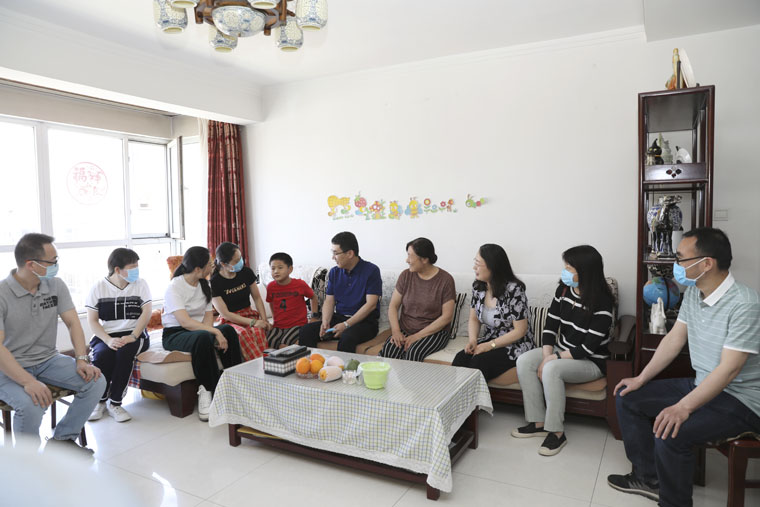 王琦的家里整潔溫馨,大家與王琦母親、愛人、孩子圍坐一起拉起家常。李曉玲副書記握著王琦母親的手,詳細詢問了老人的身體狀況、家里的情況,并表示,家里如果遇到困難,一定及時反映,醫院會盡最大的努力幫助解決,科室、醫院黨委是你們的堅強后盾。何宏濤副院長介紹了王琦在醫院工作和支援非洲的情況,目前王琦援非抗疫任務進展順利,獲得政府和大使館的一致好評,已經抵達剛果(布)開展下一階段工作。王琦母親是一名老黨員,她說,王琦支援萬里之遙的非洲,自己確實惦念,但也支持他的選擇,感謝醫院黨委對王琦的關心和信任。