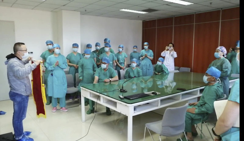 患者的兒子懷著十分激動的心情代表發言,“我們的漫漫求醫路,北下南上,一路走來,甚是艱辛,但結果讓我們感到欣慰。幸遇各位主任醫德高尚,懸壺濟世,是你們挽留我父親的生命,拓寬了他的生命通道,將我們一家人從‘憋屈’的生活中解脫出來。做完手術那天,我們像過年一樣喜悅,一掃近一年來的陰霾。各位主任給予我父親的關注、關心和幫助,我們一家人將銘記在心”,他還將就醫的艱辛過程和本次手術經歷制作成視頻進行展示。