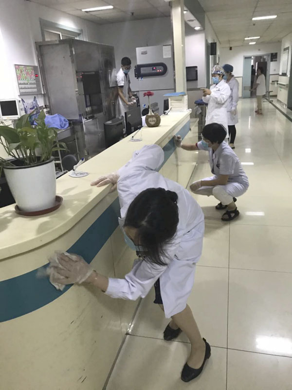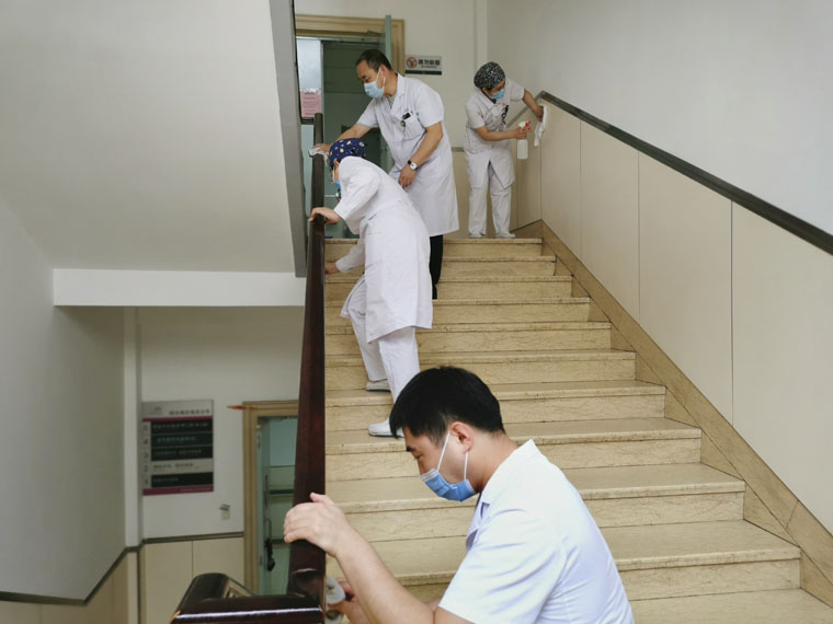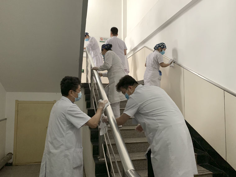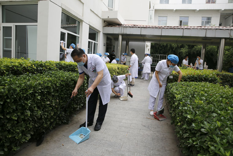 東院的衛生區包括診區、病區、教學樓、大廳、步行梯、公共通道、職工食堂、花園綠化帶等不同區域,場地分散,任務繁多。東院黨辦室、工會和后勤保障處結合科室分布、工作性質、黨員人數等具體情況,為各黨支部劃分了各自的責任區,分片包干,分頭負責。