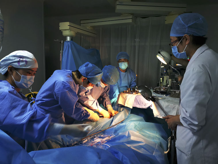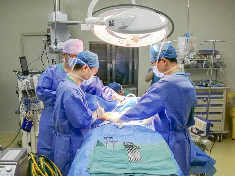 次日凌晨1點30分,東院首例VV-ECMO支持下的嚴重胸外傷手術正式開始,由東院胸外科副主任溫士旺團隊主刀。由于患者從受傷到手術已超過1天,斷裂氣管周圍有明顯的水腫、氣腫、粘連,手術分離十分困難。將氣管游離后發現,上斷端已縮至頸部,并距離下斷端4cm。溫士旺主任醫師將氣管上斷端拉至胸腔,同時松解下段氣管及隆突,以減少吻合張力。實施氣管吻合術后,氣管重建成功。隨后對患者進行右側肋骨骨折的固定,重癥醫學科張濤醫師及龐冰冰主管護師對ECMO治療精心管理。患者離斷的主氣管在ECMO呼吸機支持下,泄露率達100%,這意味著患者雙肺都沒有通氣,在縫合患者氣管斷端的近1小時內,ECMO保證了他的氧和及其他生命體征相對平穩。手術于次日清晨6點20分順利結束,經過近12小時的緊急營救,患者安返重癥醫學科病房,目前生命體征穩定,ECMO支持條件逐漸下調,血管活性藥物逐漸減量。