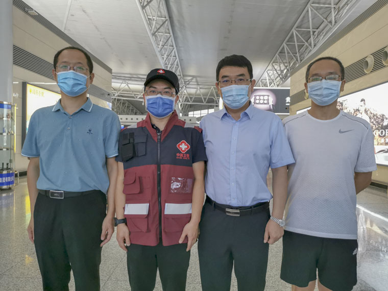 根據河北省委、省政府關于支援新疆巴州新冠病毒核酸檢測的工作安排,8月5日早晨7點10分,我院檢驗科張超主管技師隨隊自正定機場出發馳援新疆,何宏濤副院長、門診部安波主任、檢驗科馬鳴副主任陪同送行。