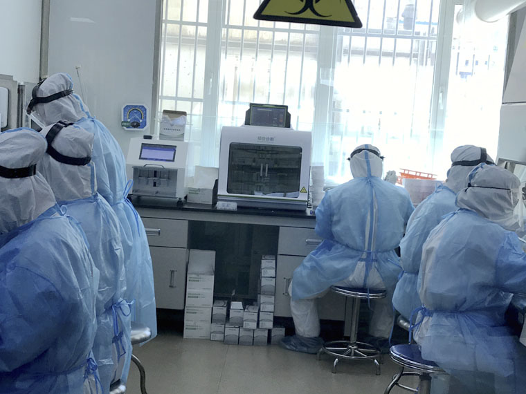 我和醫大三院的馮彥蕊老師就如何最大限度利用現有人員和儀器提升核酸檢測能力提出建議,尤其是建議將現在的6小時輪班制改為12小時輪班,同時進行班內輪崗、輪休,以保證檢測人員的體力、精力始終處于最佳狀態。我們當即將新到的儀器安裝到位,并進行簡單的培訓。之后,我們河北醫療隊進行了分組,有負責標本前處理的,有負責標本混樣的,我與另一位老師負責加樣,力爭在各自崗位通過實踐發現問題。