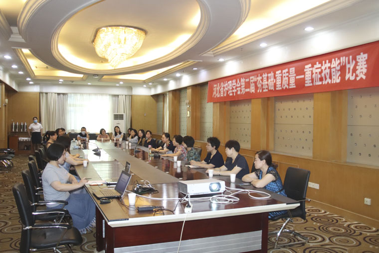 在疫情防控常態化要求下,本次大賽審核了參賽選手及評委老師們的核算檢測結果,并采取封閉式管理,謝絕陪同人員進入會場參賽,以保證比賽安全、高效、有序地進行。河北省護理學會趙莉理事長參加了此次大賽的賽前動員會,重癥護理專業委員會尹彥玲主任委員對由20人組成的專家評委團進行了細致全面的培訓,以統一標準,保證了比賽的同質性和公正性。