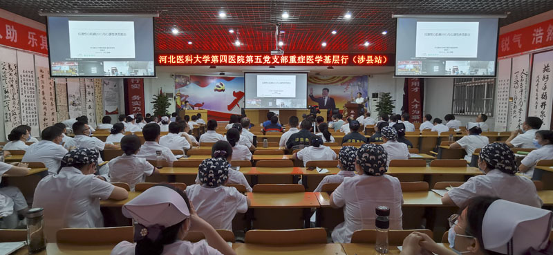 在涉縣中醫院進行的學術交流會上,支部書記胡振杰就應激性心肌病的發病機制及特點、診斷要點及治療原則進行了深入淺出的講解。支部黨員朱桂軍、霍焱、高鵬分別就ARDS、重癥超聲的應用、俯臥位的實施等題目進行了分享,當地多個醫院的專家就工作中遇到的疑難病例進行了分享與討論,講座持續4個多小時,來自邯鄲市中心醫院、館陶中醫院、峰峰礦區總醫院的多名專家和醫護人員及涉縣中醫院組織全院20多個科室在線觀看了學術講座。涉縣中醫院的領導及專家表示,此次學術交流對于涉縣中醫院重癥醫學的發展有很大的啟發,有助于提升涉縣危重病人整體救治水平,為老百姓帶來了福音。