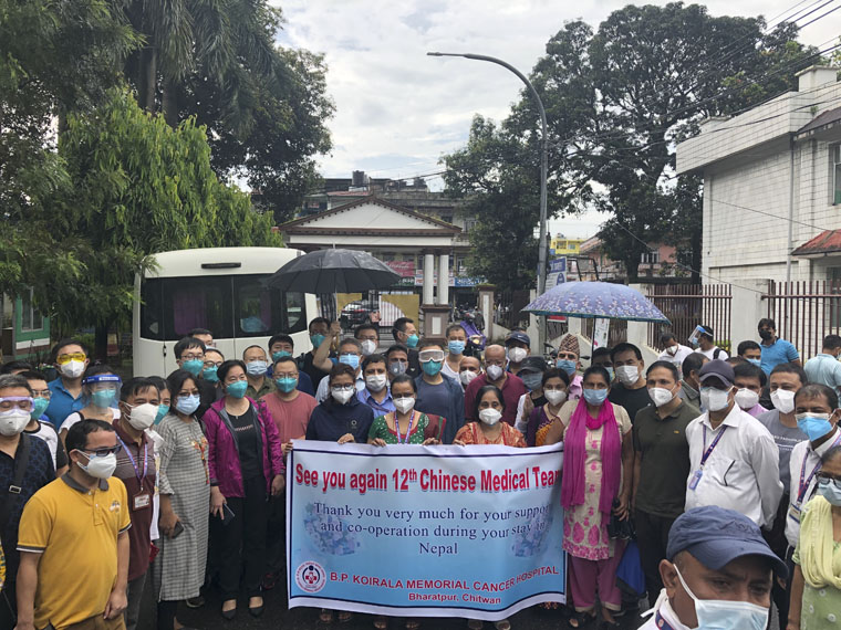 9月9日一大早,B.P.柯依拉臘紀念腫瘤醫院的領導、同事聚集在大巴車前為第12批醫療隊舉行歡送儀式。醫療隊員們與尼泊爾同事依依惜別,合影留念。“一年半的援外工作悄然而過,我收獲的不只是辛苦,更多的是看見病人康復后的欣慰。我沒有辜負黨和國家交給我的任務,通過服務當地的每一個百姓,一點一滴增進著中尼友誼,并為在尼數萬中國同胞提供醫療服務,這是非常值得的,我期待著在回歸工作崗位后繼續乘風破浪,砥礪前行”,倪曉辰副主任欣慰地說道。