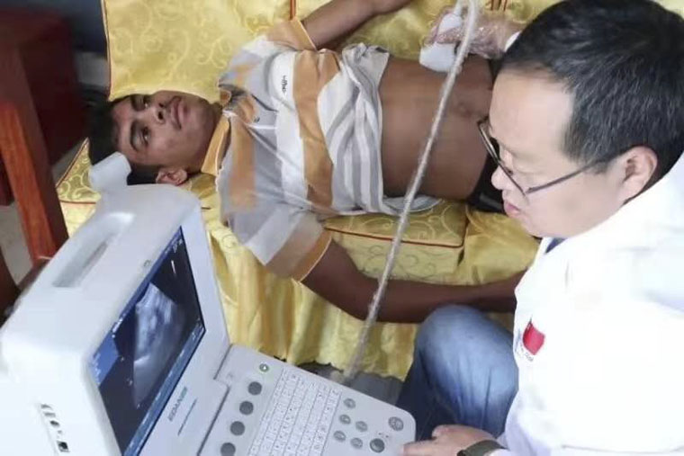 除了在受援醫院開展手術、查房、會診等工作,倪曉辰副主任隨我國援尼泊爾醫療隊多次組織義診,到加德滿都華人華僑協會、博卡拉華人華僑協會、紅獅水泥尼泊爾公司、新希望尼泊爾公司、尼泊爾中華寺等為在尼泊爾的中國同胞免費體檢、贈送各種常備藥械藥品、提供醫療咨詢等,其中,倪曉辰進行了數千例泌尿系超聲檢查排查泌尿系結石和數場科普講座。