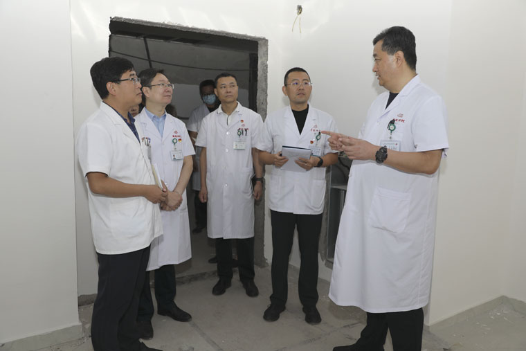 徐金升院長一行先后到綜合樓地下設備庫房,南樓建設工地,教學樓的學生宿舍,器械舊庫房,新醫技病房樓地下藥庫、負二層食堂廁所抽水泵房、保潔庫房、負三層空調機房水泵房,醫院前庭廣場、西門周邊,門診樓二樓信息機房等處實地查看,認真聽取各分管部門負責人匯報,對現階段的施工現狀、設備運轉、資源配置、院區環境、學生住宿等情況提出意見和建議,對于遇到的各種問題和存在的安全隱患,能現場解決的,當場予以協調解決,不能現場解決的問題,責成相關職能科室限期解決。