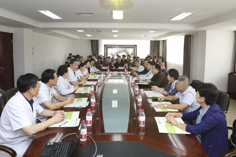 徐金升院長致歡迎詞,代表醫院對蔡毅書記一行的到來表示熱烈歡迎,向其介紹了參會人員。李曉玲副書記以PPT的形式詳細介紹了我院的基本情況、黨建工作、學科建設、學術交流、人才培養、文化建設以及社會公益等方面的工作,就我院黨建和績效考核的經驗做法做了說明。蔡毅書記簡要介紹了海南醫學院第一附屬醫院的基本情況,表示此行旨在學習借鑒我院在黨委領導下院長負責制、績效考核等方面的先進經驗。