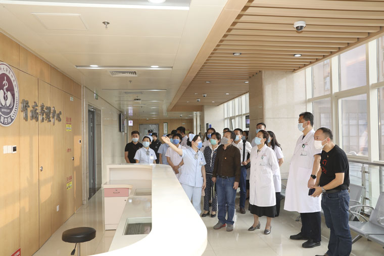 隨后,在徐金升院長、李曉玲副書記的引領下,蔡毅書記一行參觀了我院的腎內科、檢驗科和消毒供應中心等地,雙方科室也進行了一對一的對接交流。參觀過程中,海醫一附院同仁為我院的內部管理、黨建工作、學科建設和信息化建設等頻頻點贊,表示此行收獲頗豐。