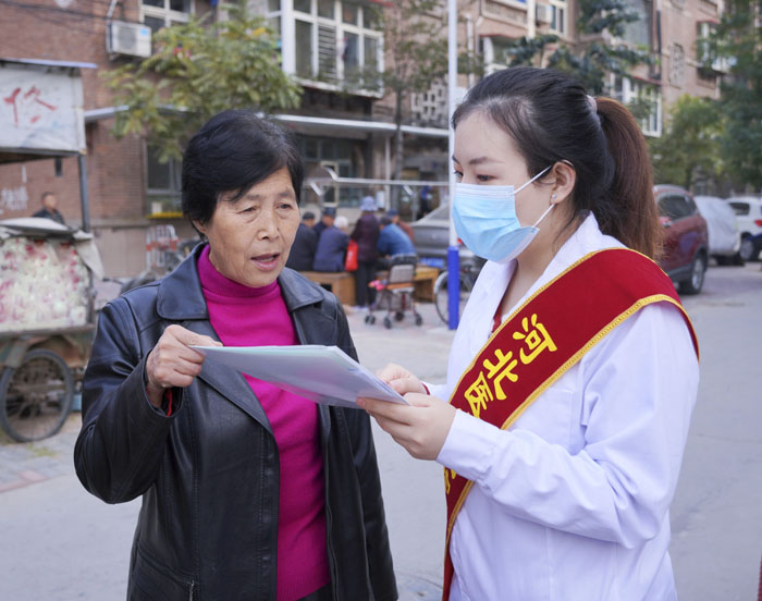 當日上午,2019級專碩13班的同學按照提前分好的小組,在班干部的組織下,前往部分科室為缺少家人陪伴的老年患者提供針對性的服務,包括幫助行動不便的老年患者外出活動,為老年患者查體、聊天等。下午,2020級專碩15班的同學在棉二小區開展社區義診活動,共為50余位老人進行了健康宣教,還為30余位老人免費測量了血壓和血糖。同學們通過傳遞正確戴口罩、洗手的方式,提醒老人們注意做好疫情期間的個人防護,還給參與活動的老年朋友分發了一些生活中較為常用的“小禮物”。