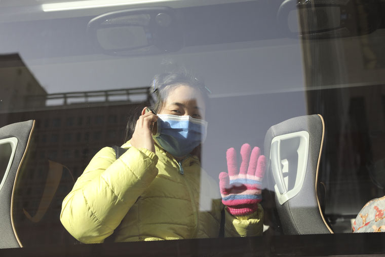 護士許云英隨隊前往無極執行采集核酸任務,上車后,她一只手揮向窗外和同事道別,另一只手拿起電話告知家人“已經出發,不用擔心。”