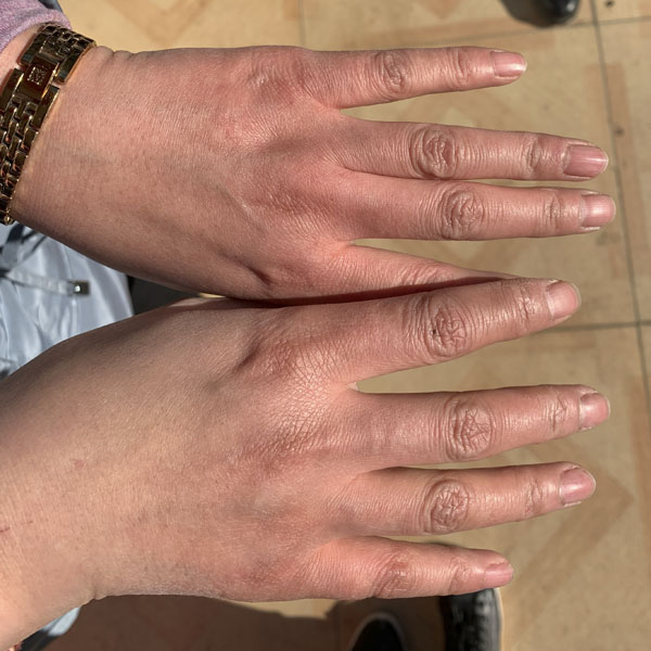 這兩天是石家莊天氣最寒冷的兩天,又是戶外工作,隊員們都是把羽絨服穿在隔離衣里面,但是為了方便采集,手上只能戴一層薄薄的一層乳膠手套,一會的時間就完全凍透了,而且每采集一個病人都要拿手消噴灑消毒,有冷風吹來,就愈加的寒冷。而且為了節省防護物資和更快的完成任務,隊員們經常都是連續工作8-10個小時,不吃不喝不上廁所。隊員們工作完吃飯的時候,手套一摘,手全部都皴了,連筷子也都拿不住。朱希燕護士長雙手都有腱鞘炎,由于寒冷和工作量大復發了,兩只手都疼的非常厲害,但她一直堅持著,沒有任何退縮。