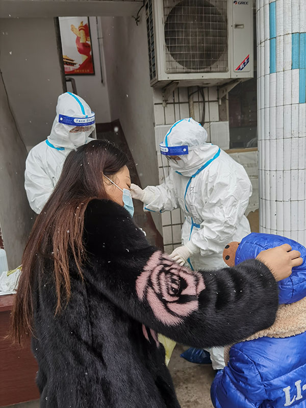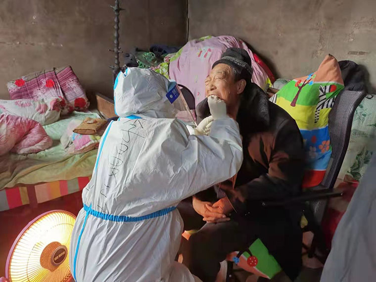 為保證采集工作有序、順利進行,在執行采集任務前,他們提前與村干部對接,調配物資并合理安排隊員分組;執行采集任務時,他們主動承擔入戶采集這項相對辛苦且風險較高的工作。當他們穿著防護服踏過布滿樹杈的土路,滑過村口陰涼處凍住的冰面,邁過門口壘的高高的臺階,耐心、細致地完成名單上每一戶人員的采集工作后,村民們紛紛表示感謝,有的鞠躬、有的豎起大拇指,還有一個5歲的小姑娘現場為他們演唱了一首《聽我說謝謝你》,驅走了疲憊,在他們臉上露出了欣慰的笑容。采集任務結束后,他們還及時與隊員們進行溝通,一起想辦法提高工作效率。