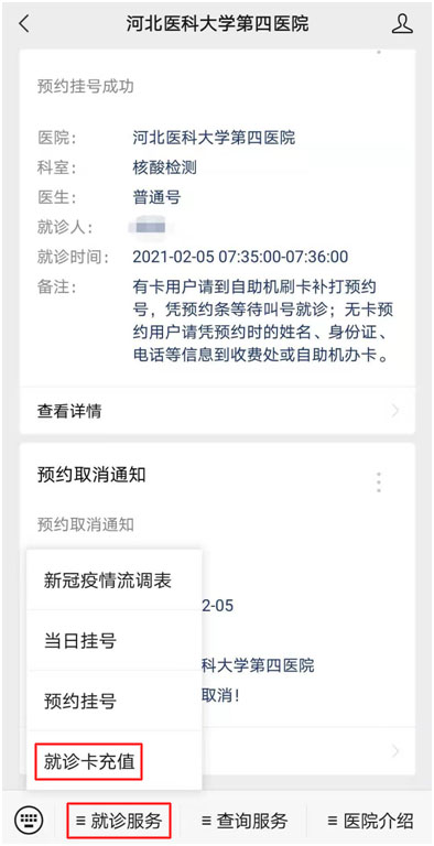 點擊“就診服務”,選擇就診卡充值,充值80元以上。