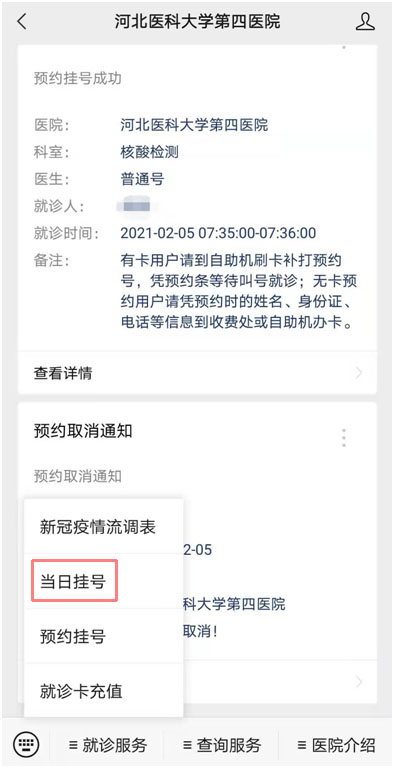 河北醫科大學第四醫院開設手機端核酸檢測預約