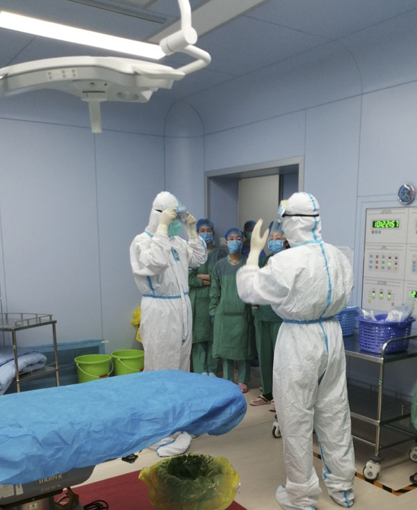 1月13日,當東院區接診第一例待除外新冠患者的急診手術時,護士們紛紛自告奮勇,積極請戰,整個團隊以“實”字當頭,以“干”字為先,及時發現問題并解決問題。術后進一步優化流程、夯實細節,縮短了緊急手術前的準備時長,為醫務人員防護和患者搶救贏得寶貴時間。在接診第二例待除外新冠患者的急診手術時,他們嚴格執行醫院和科室針對緩沖手術間的管理要求,充分發揮了院感防控監督的作用,得到了外科醫生的一致好評。