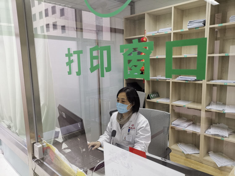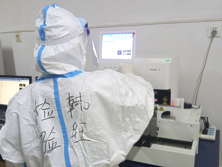 檢驗科韓旺在發熱門診積極工作,工作9年來,這是她第4次在醫院過春節。