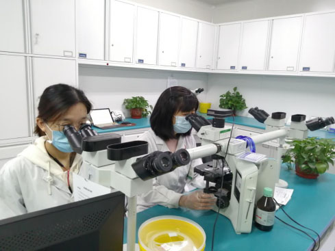 癌檢中心杜蕓帶領科室人員堅守崗位,為臨床處理疑難病例。