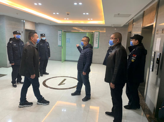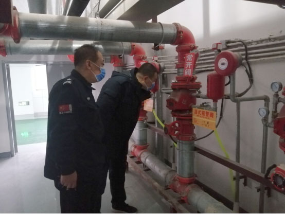 保衛處姚川、彭磊等(上圖)帶隊檢查大樓安全情況,張衛斌、馬林(下圖)對新樓濕式報警閥及噴淋管道進行檢查。姚川說:“這是我除夕夜堅守崗位的第19年。19年間,時光飛逝、歲月如流,小‘我’與大‘家’共進,我堅守、我自豪!”