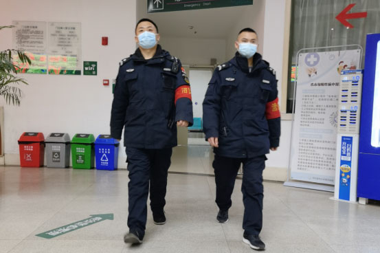 東院保衛處祁豪豪、任曉辰在門診三樓進行安全巡邏。