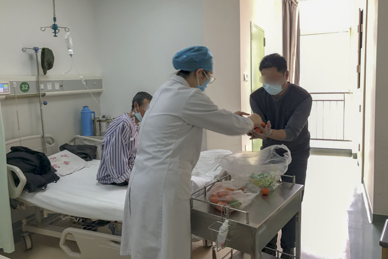 口泌病區的金婷婷主動值班,為在院患者及家屬送去了熱氣騰騰的餃子和新鮮的水果。
