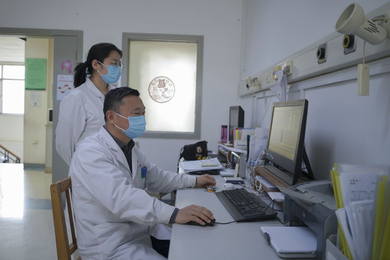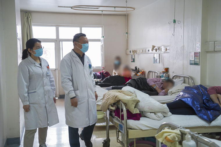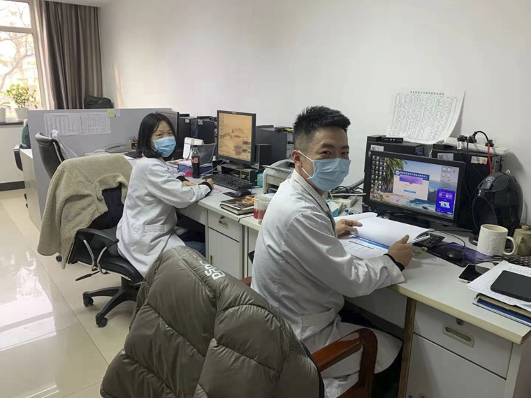 大年初一,婦瘤科牛書懷、劉青進行查房和其他工作。劉青說,“這是我第一次在大年初一堅守崗位,非常光榮,一定把醫學的接力棒接穩,跑好。”