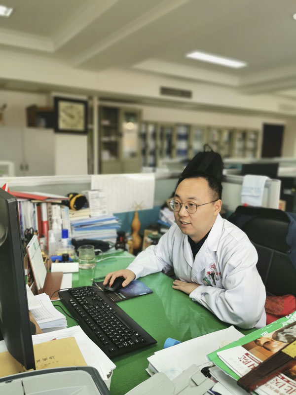 大年初一,醫務處邢鵬輝正在處理多項工作。